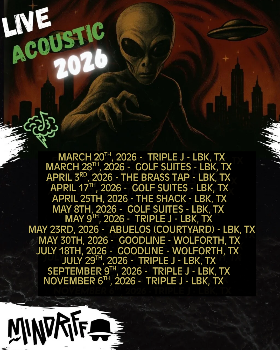 Looking for a band that plays the best of the 80s, 90s, 00s, and today, with some original music thrown in? We've got you covered! Whether you're looking for an acoustic set or a full band performance, we're available for gigs in Lubbock, TX for the 2026 season.